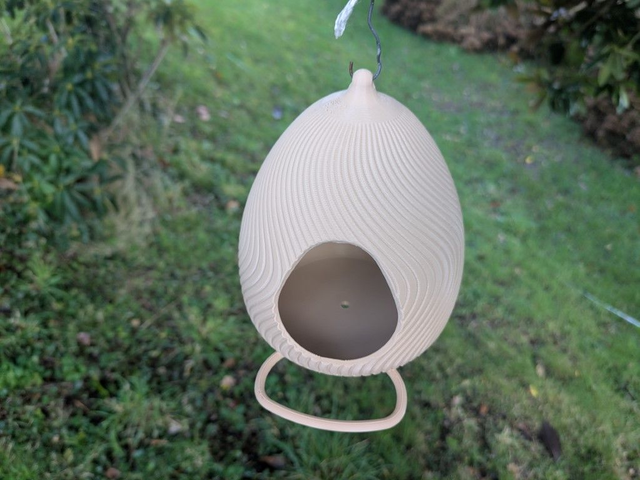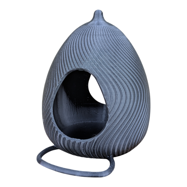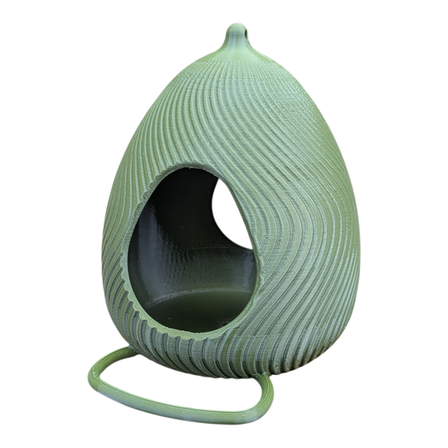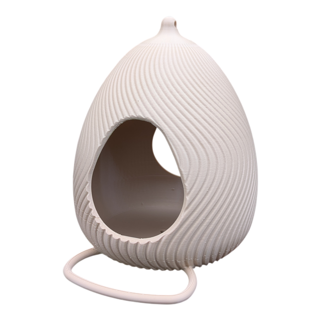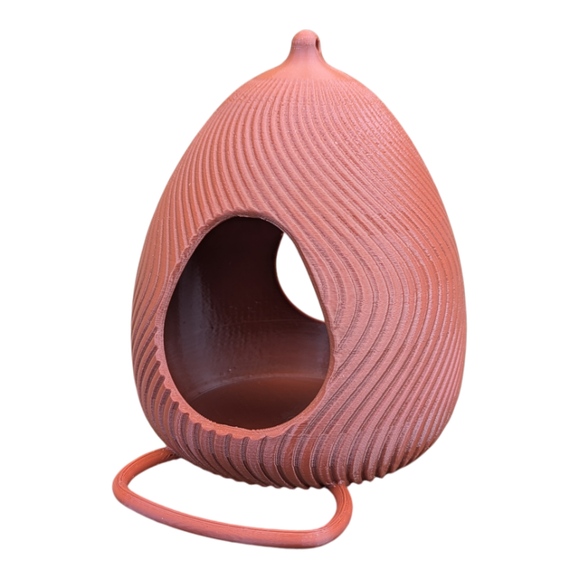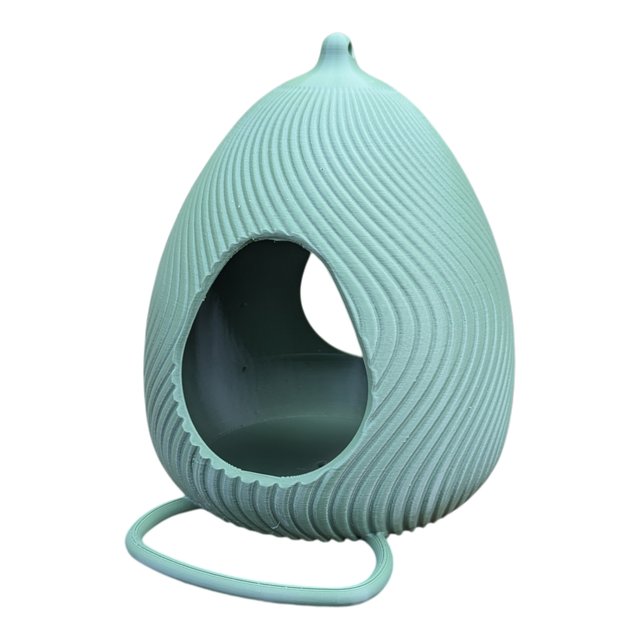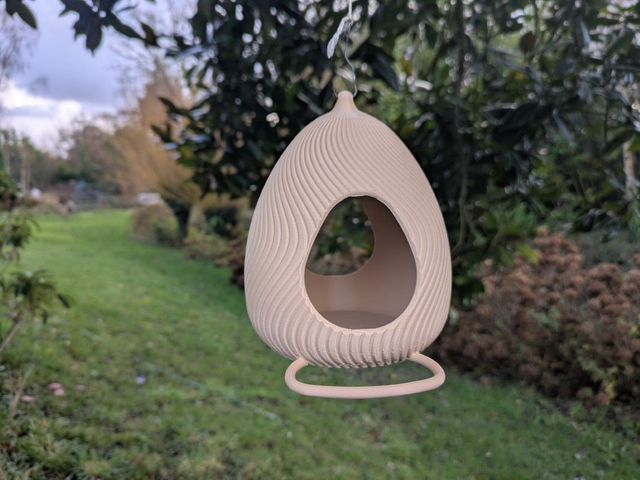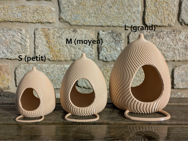Craquez pour cette mangeoire à oiseaux originale et artisanale en forme d'œuf design à effet de vague, style moderne.