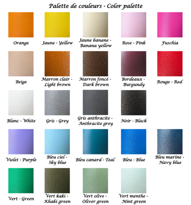 Choisissez parmi les 23 couleurs et les 3 tailles de mangeoire disponibles au choix :