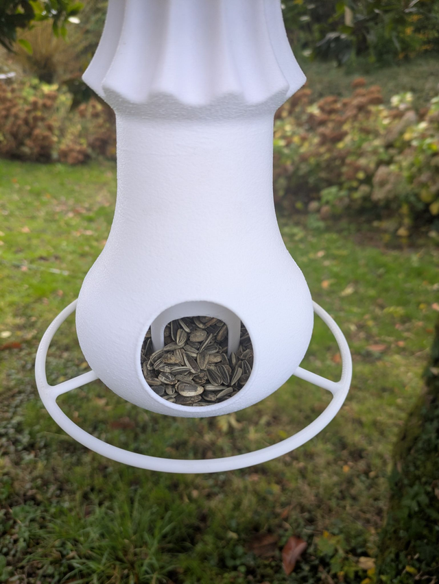 Le remplissage du chapeau de la mangeoire champignon s'effectue facilement par le couvercle du bas qui est démontable. L'idéal pour aider les oiseaux de la nature à affronter l'hiver.