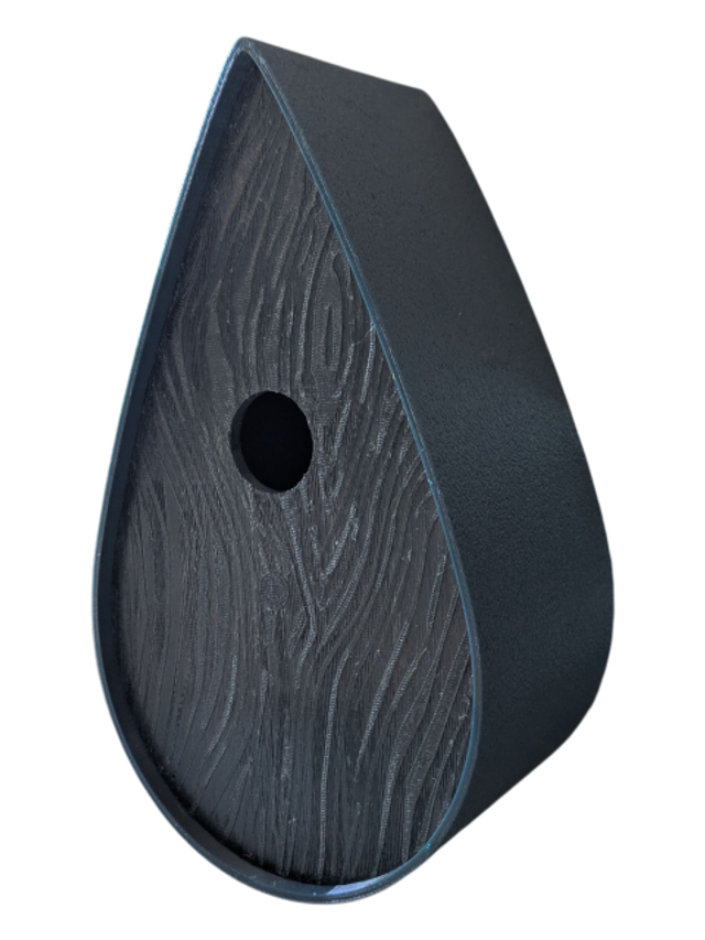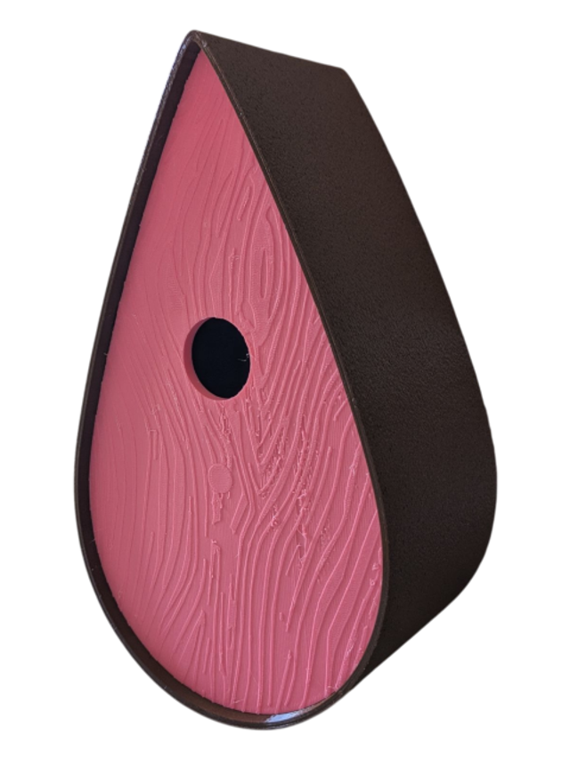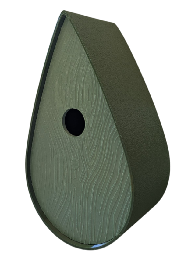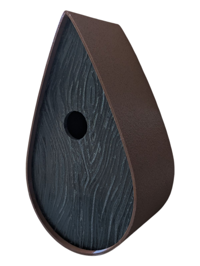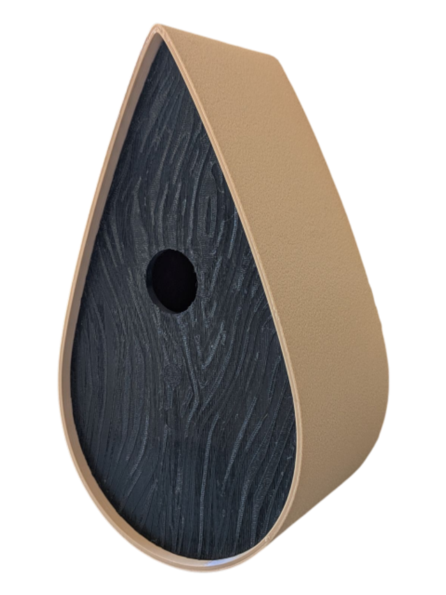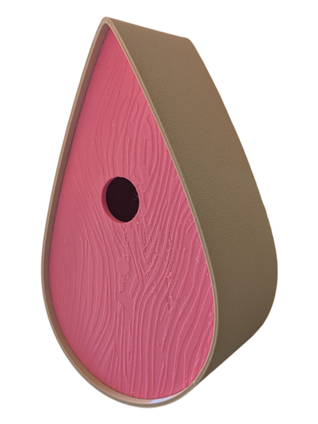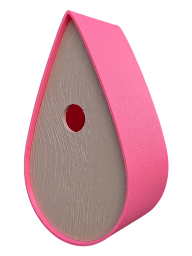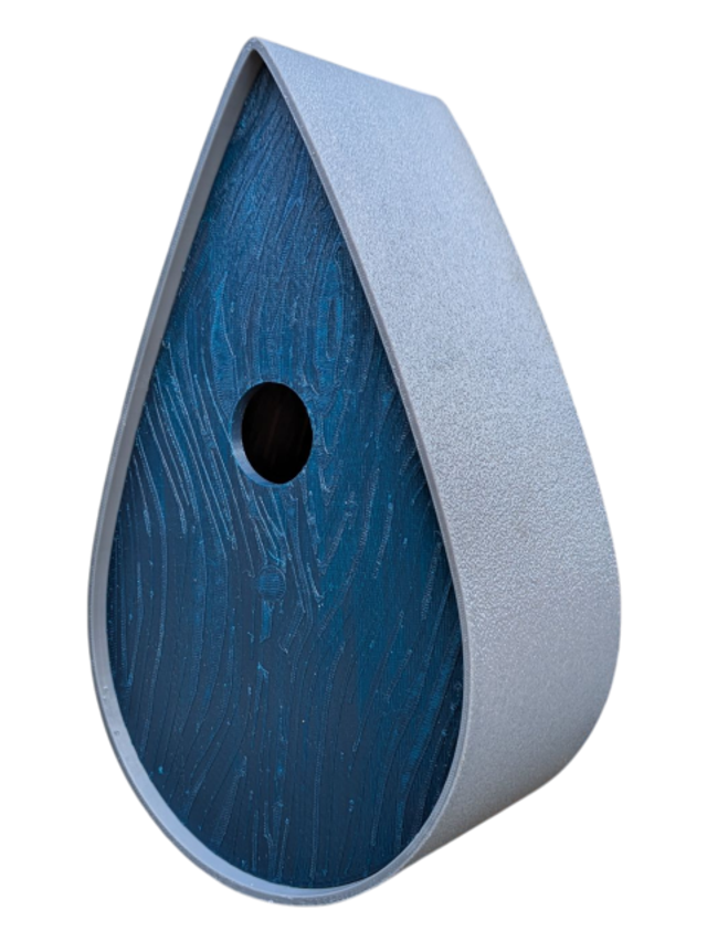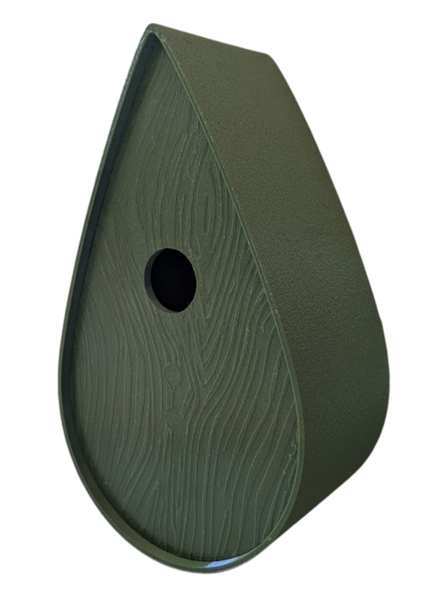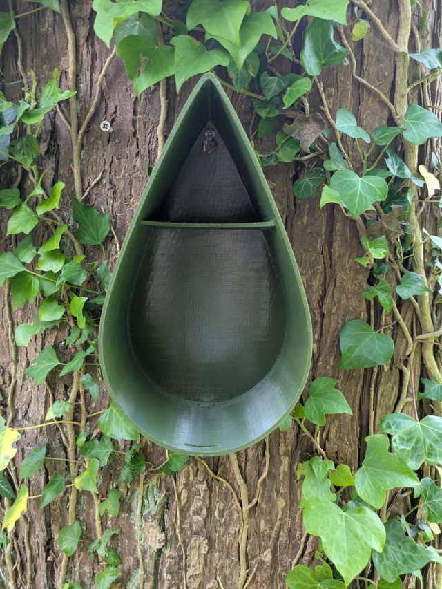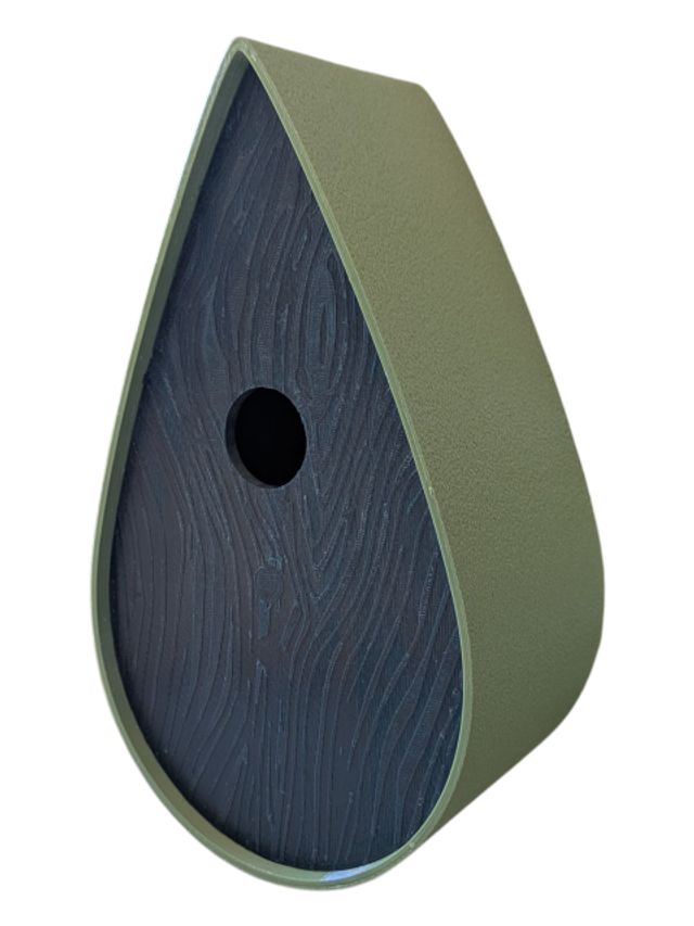 Nichoir à oiseaux de la nature original de style organique en forme de goutte d'eau effet strié soyeux, rugueux et face avant effet bois naturel. Décoration de jardin, décoration d'extérieur. L'idéal pour aider les oiseaux de la nature à procréer et préserver la biodiversité.