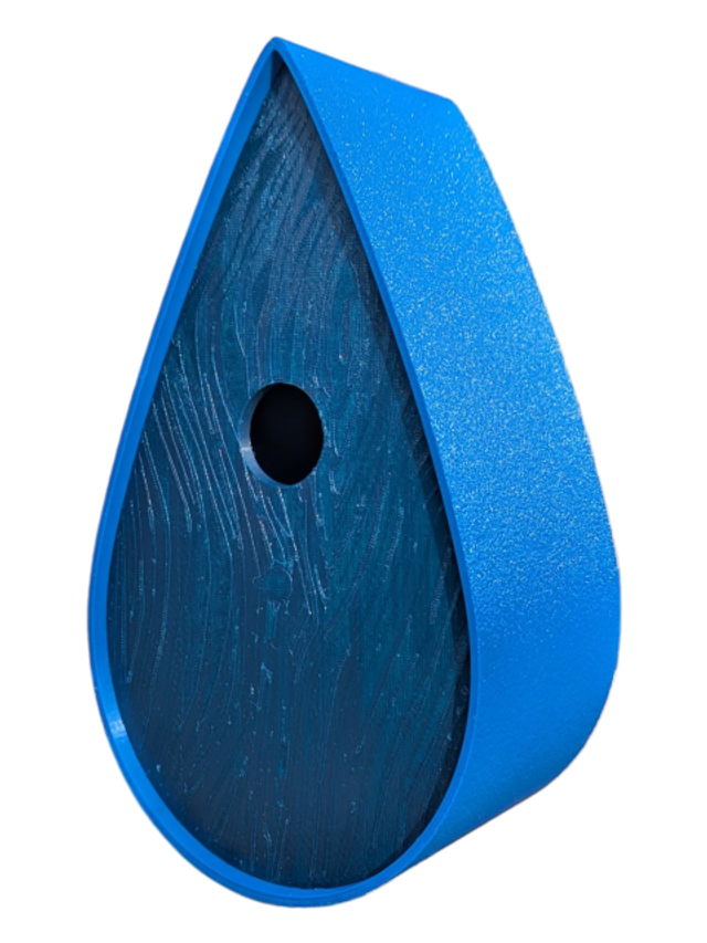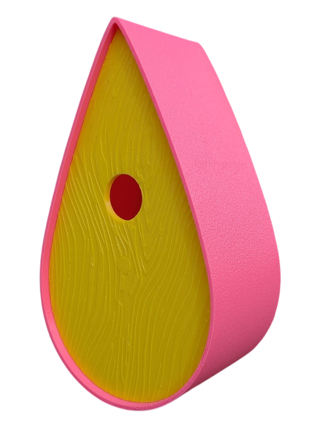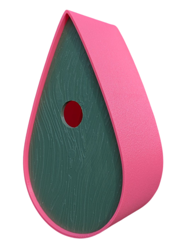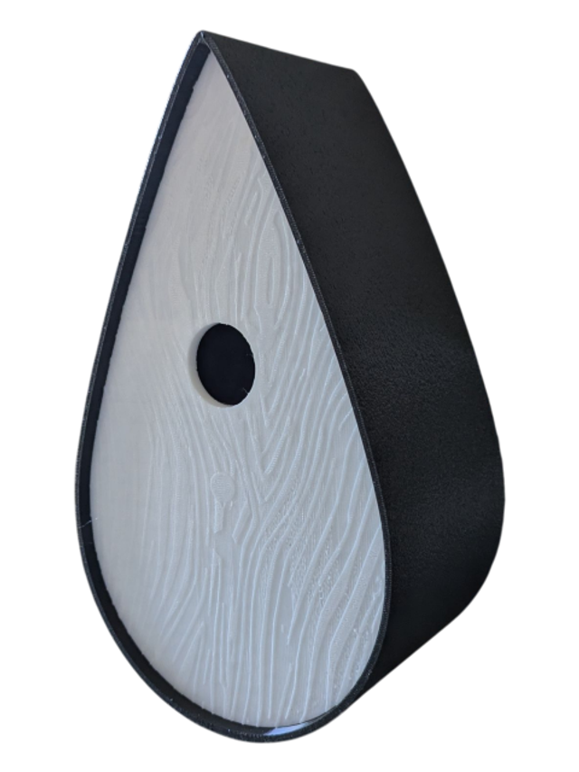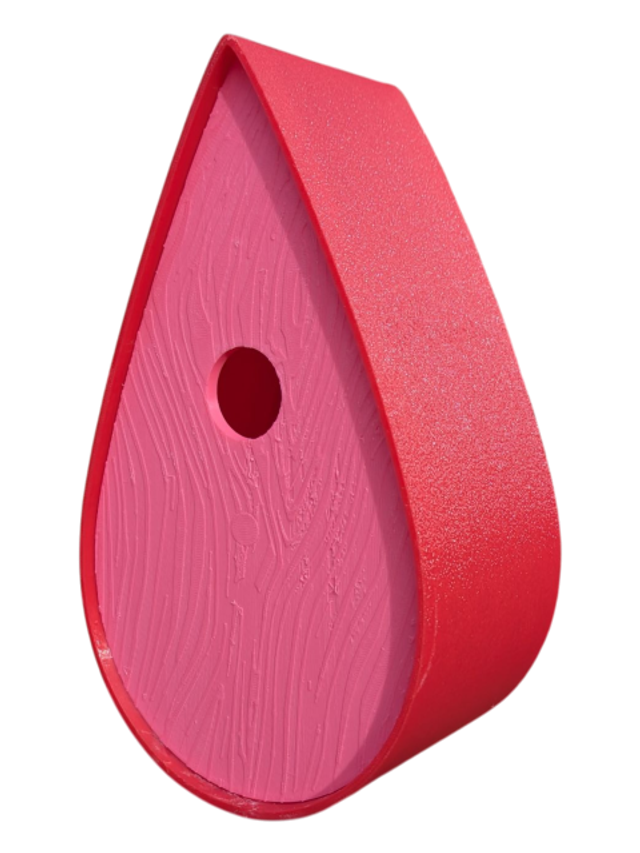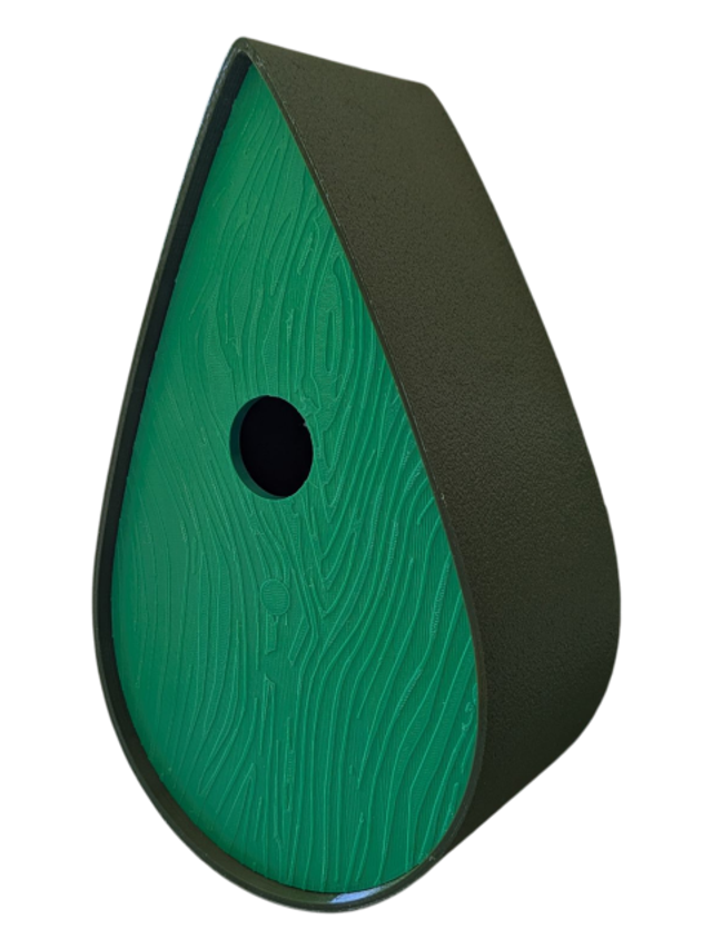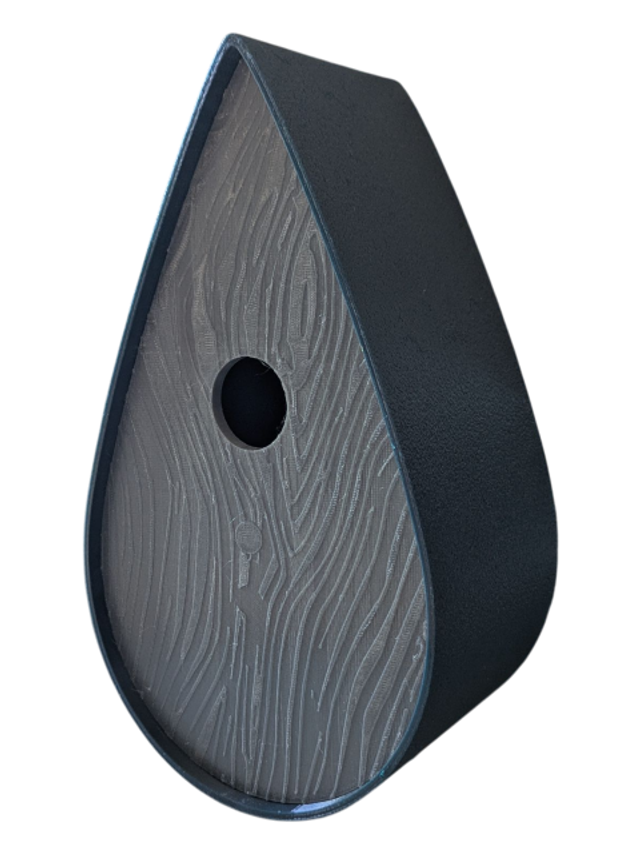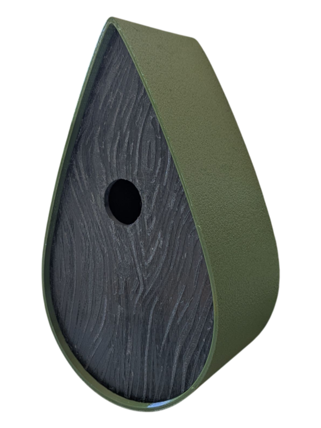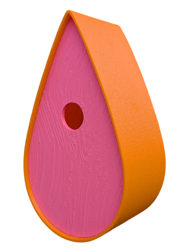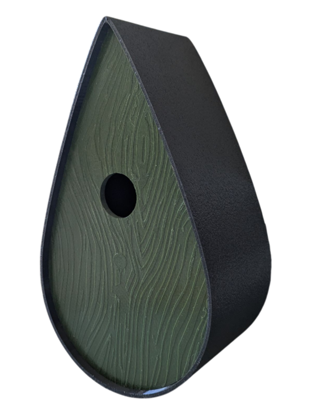 Nichoir à oiseaux de la nature original de style organique en forme de goutte d'eau effet strié soyeux, rugueux et face avant effet bois naturel. Décoration de jardin, décoration d'extérieur. L'idéal pour aider les oiseaux de la nature à procréer et préserver la biodiversité.
