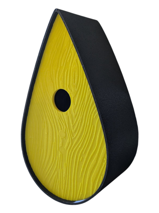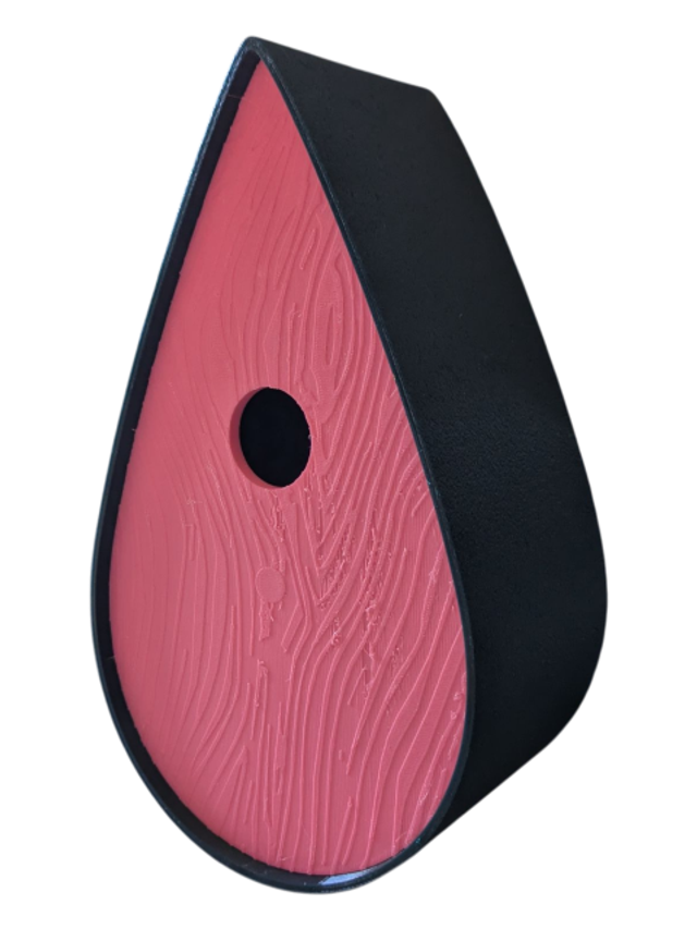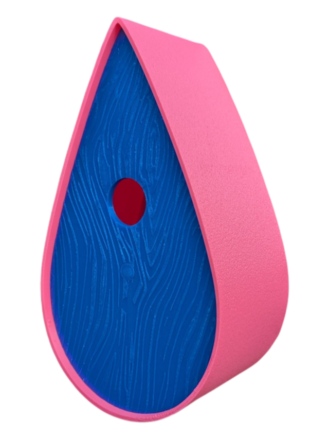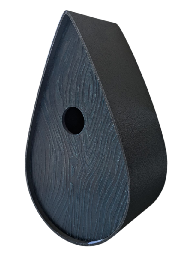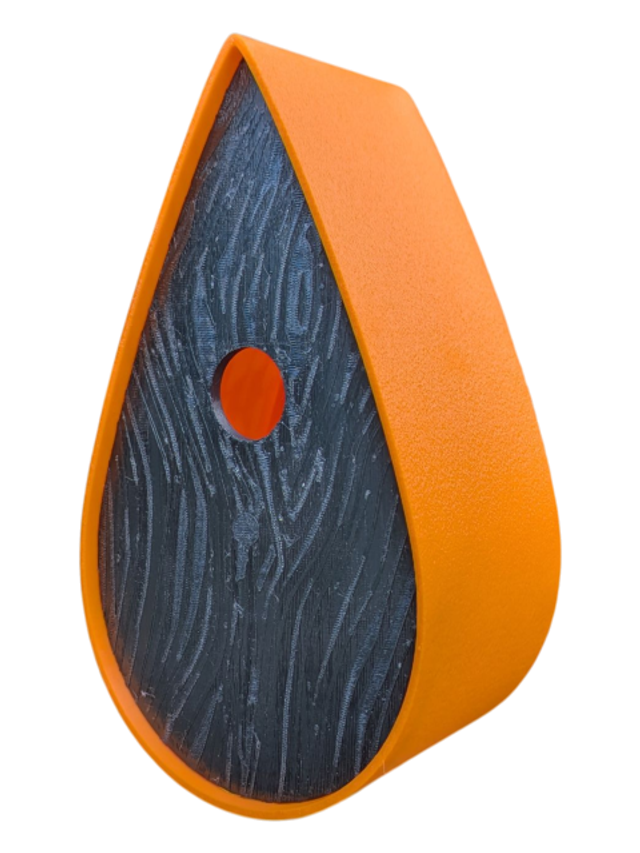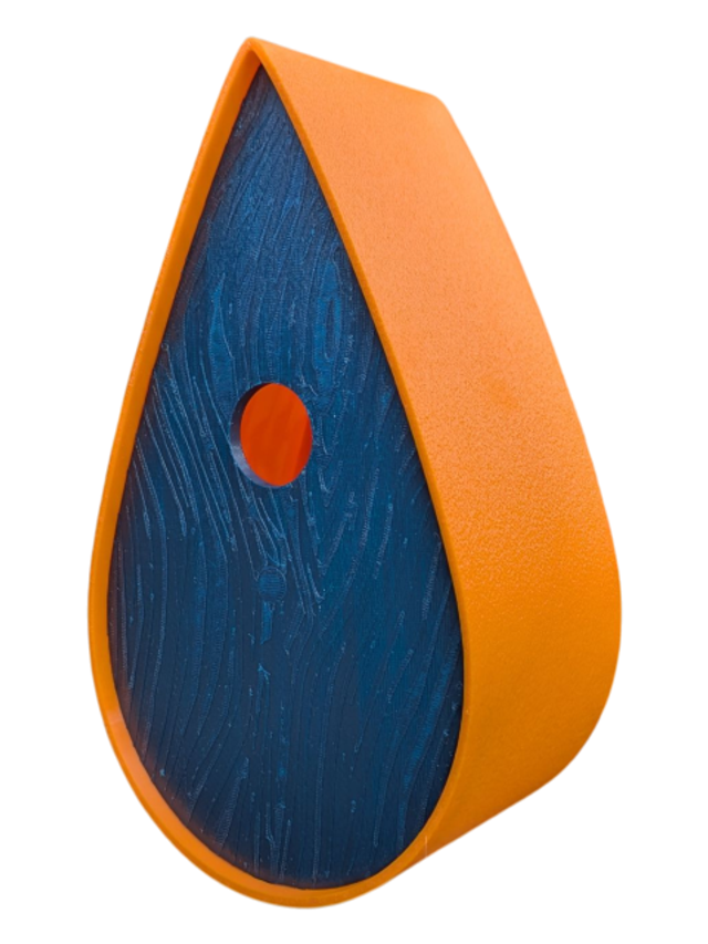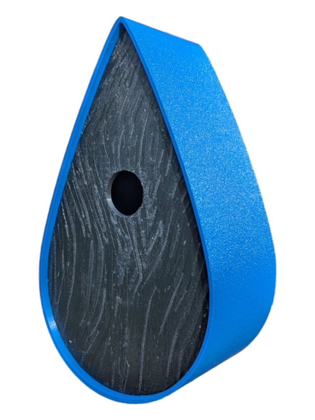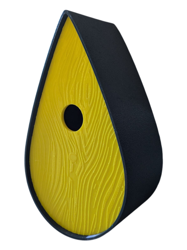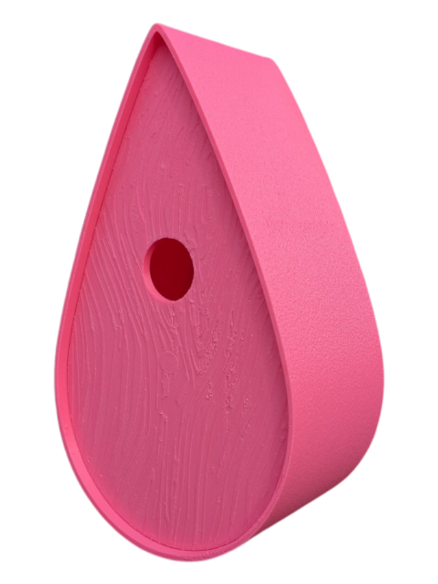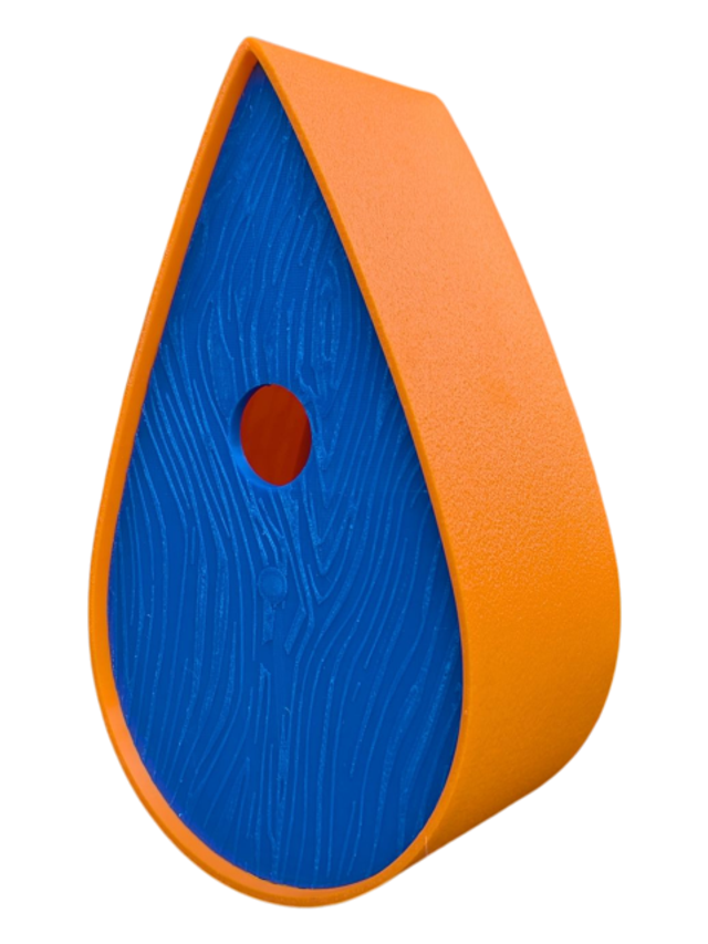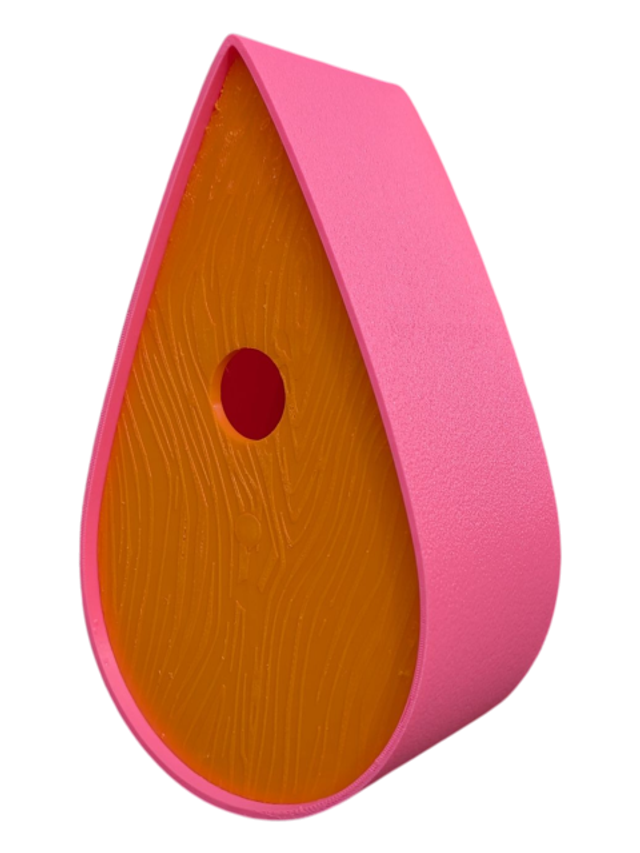 Nichoir à oiseaux de la nature original de style organique en forme de goutte d'eau effet strié soyeux, rugueux et face avant effet bois naturel. Décoration de jardin, décoration d'extérieur. L'idéal pour aider les oiseaux de la nature à procréer et préserver la biodiversité.