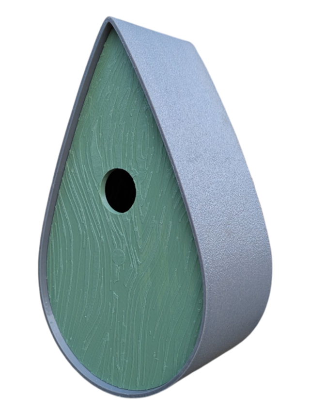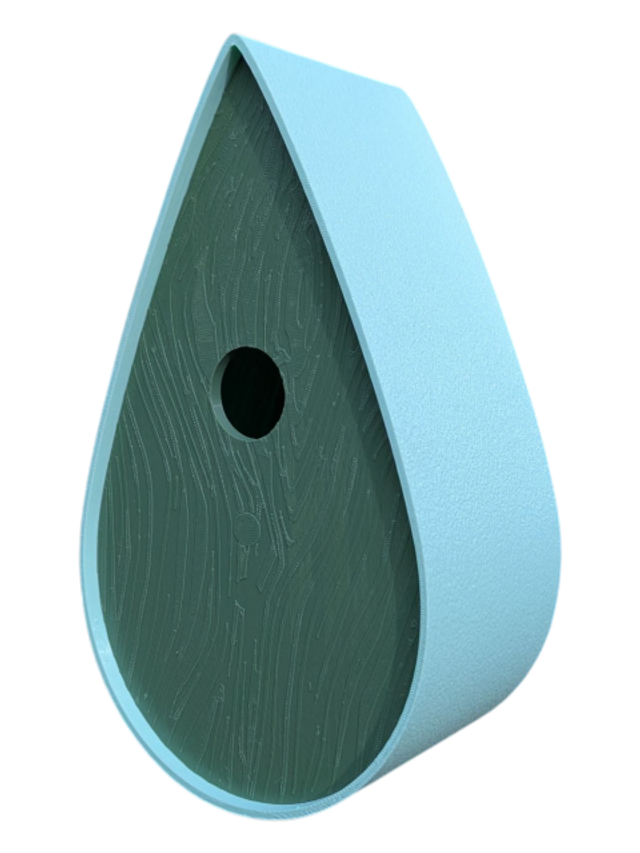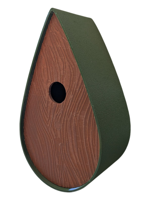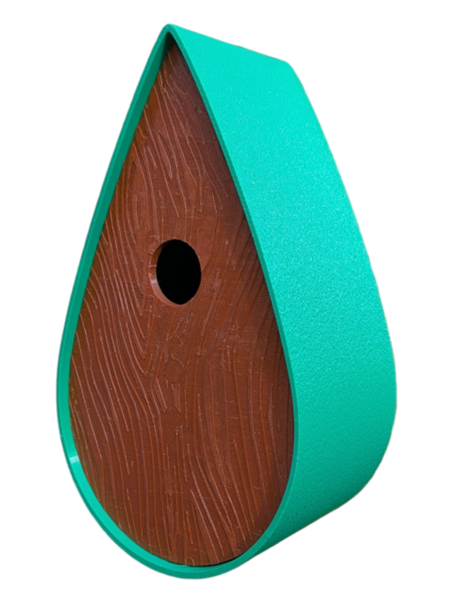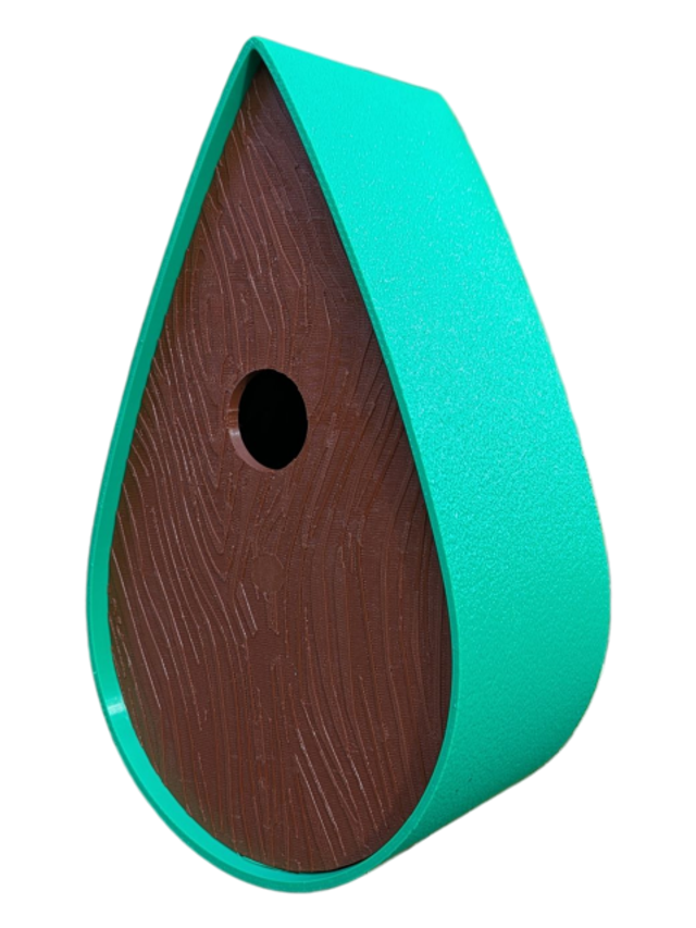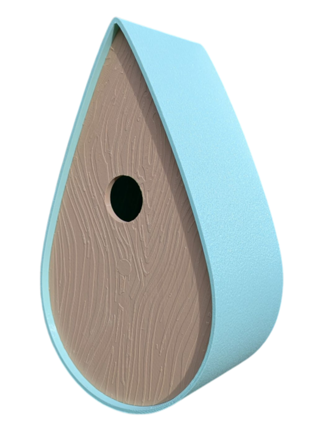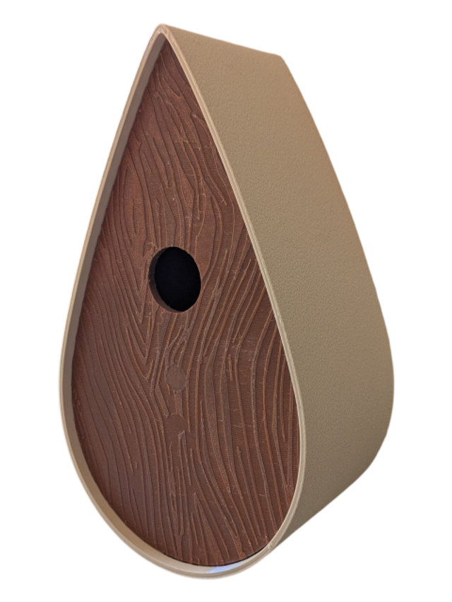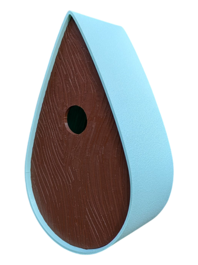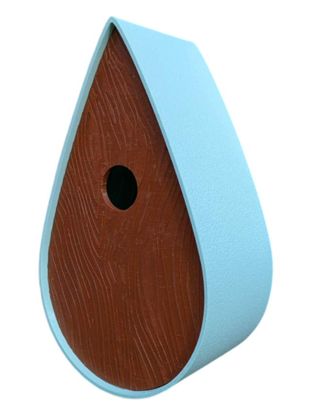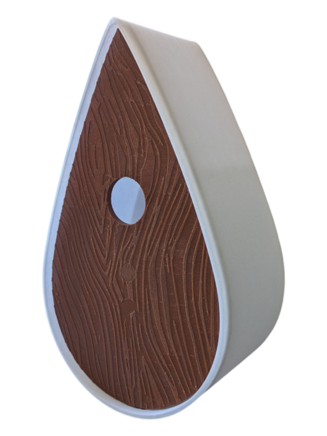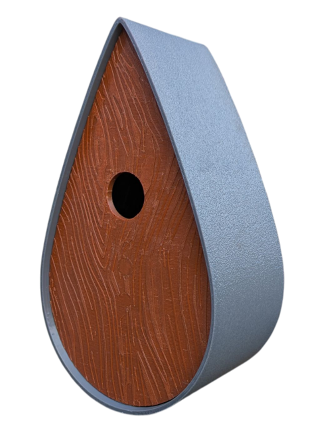 Nichoir bicolore à oiseaux de la nature en forme de goutte d'eau moderne effet bois