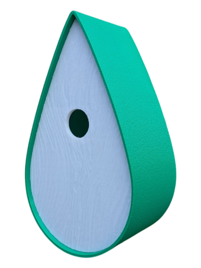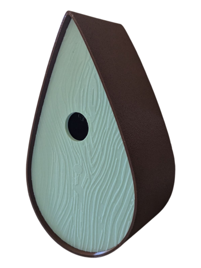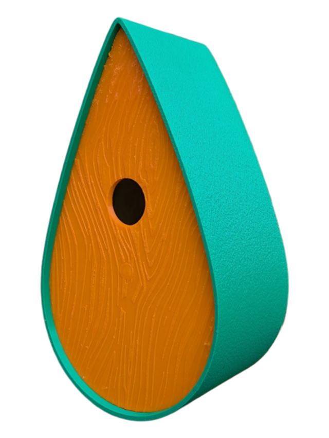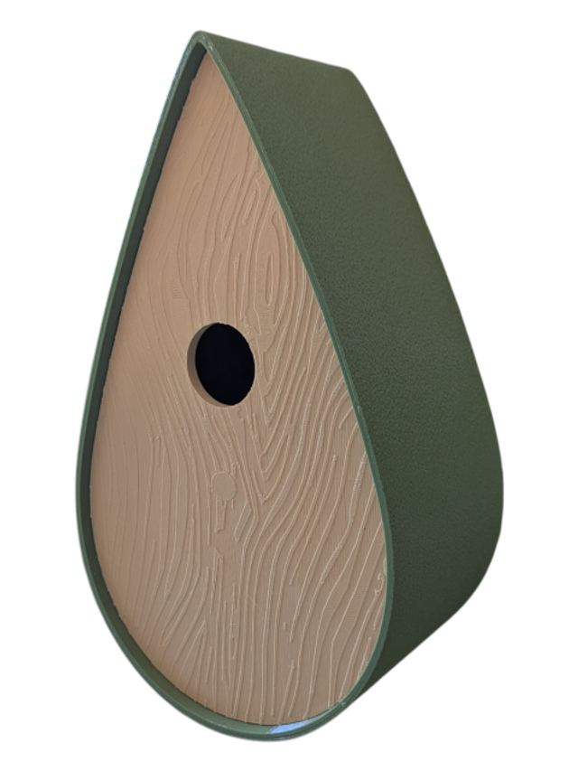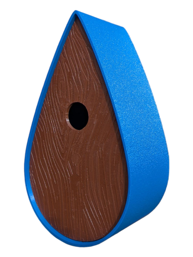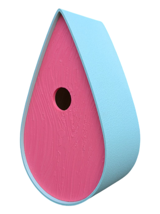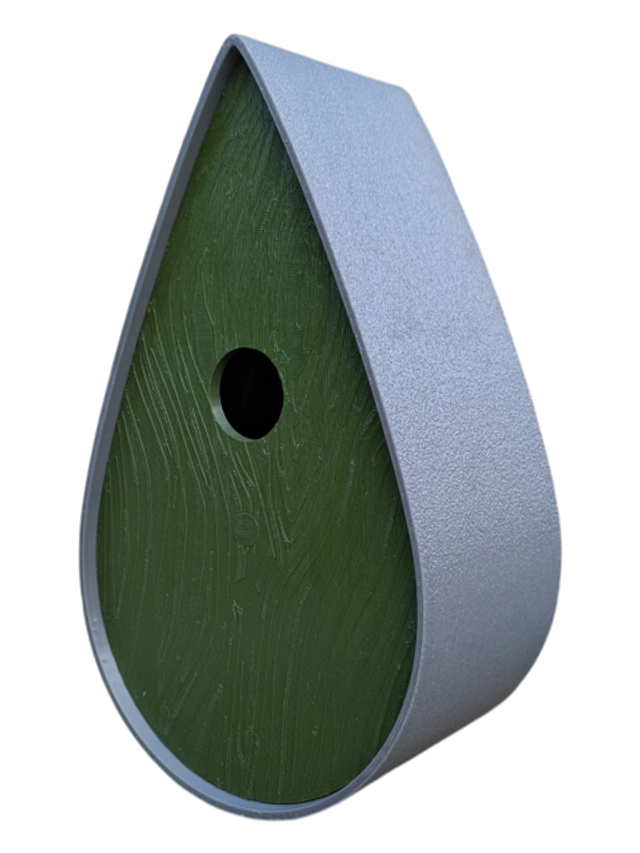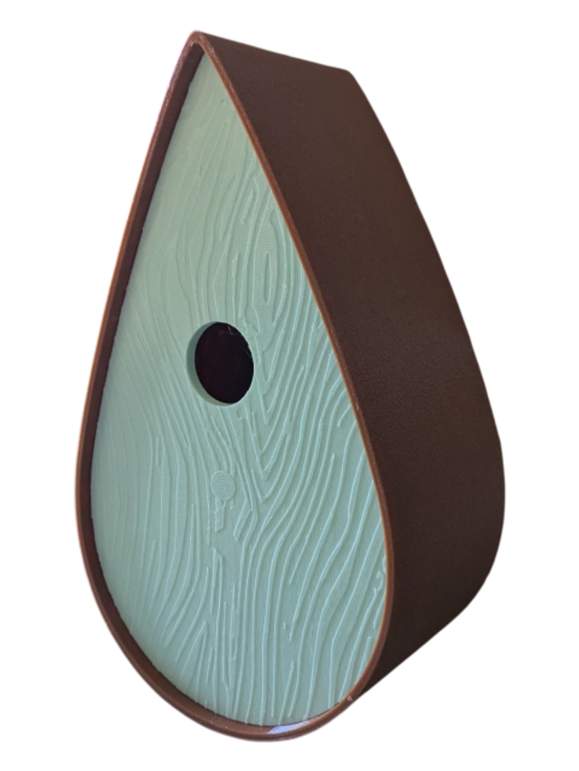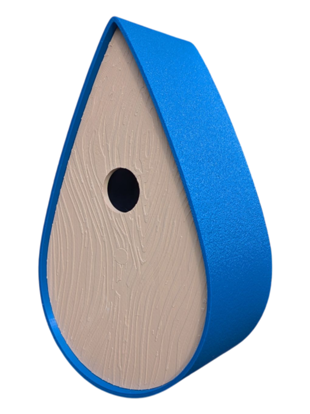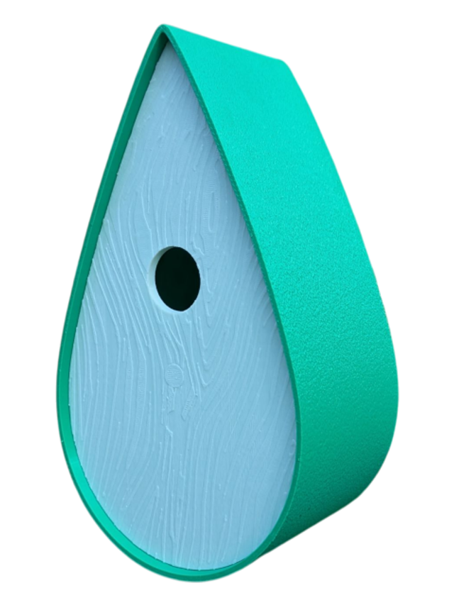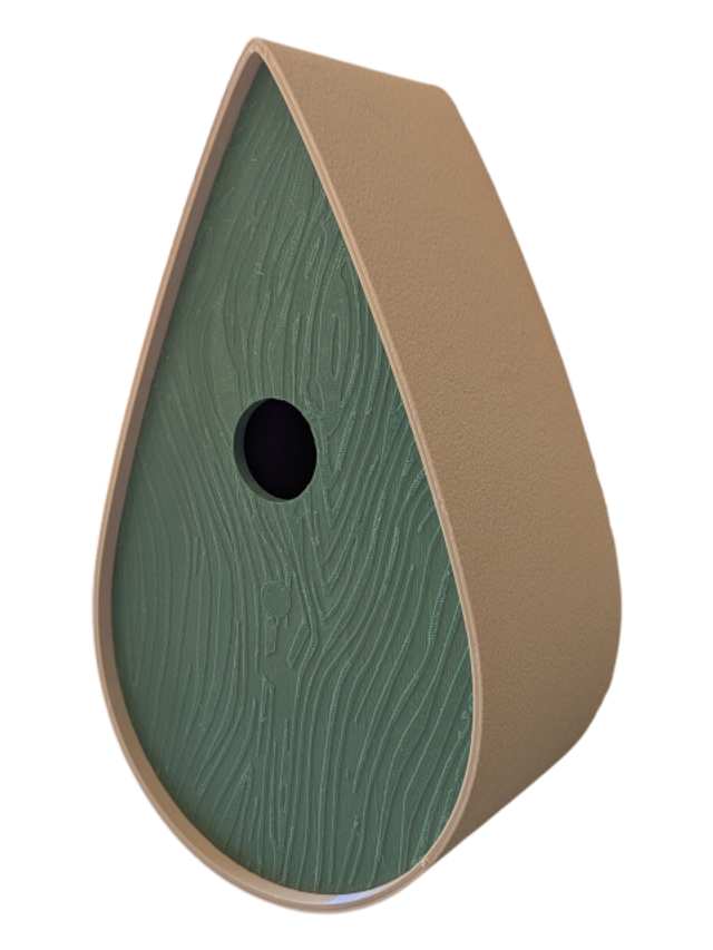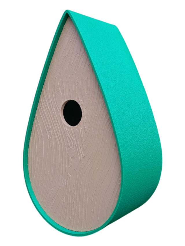 Nichoir bicolore à oiseaux de la nature en forme de goutte d'eau moderne effet bois