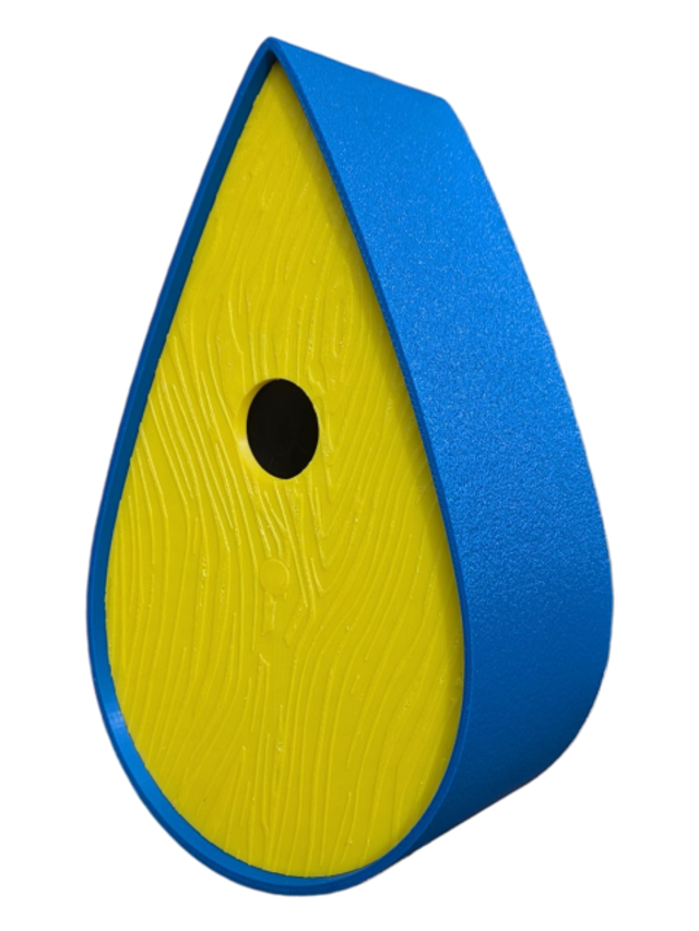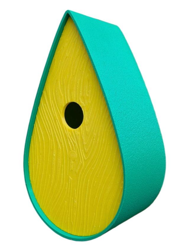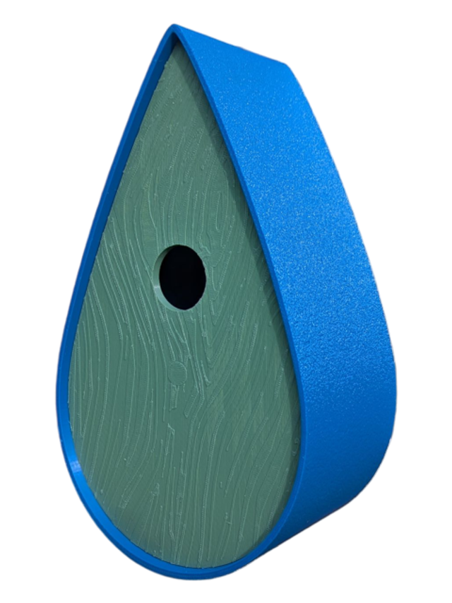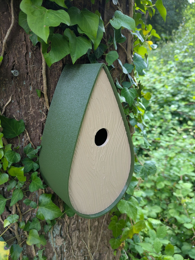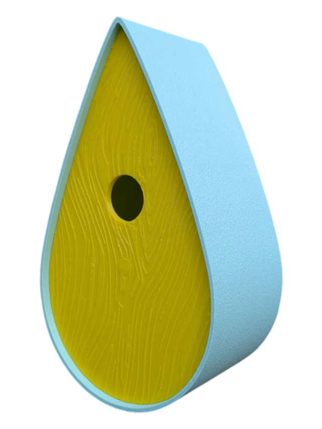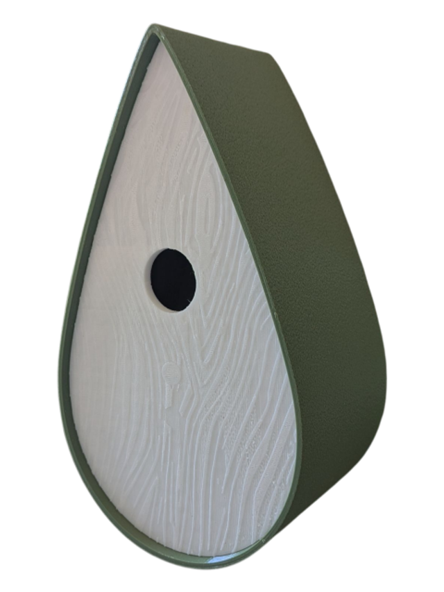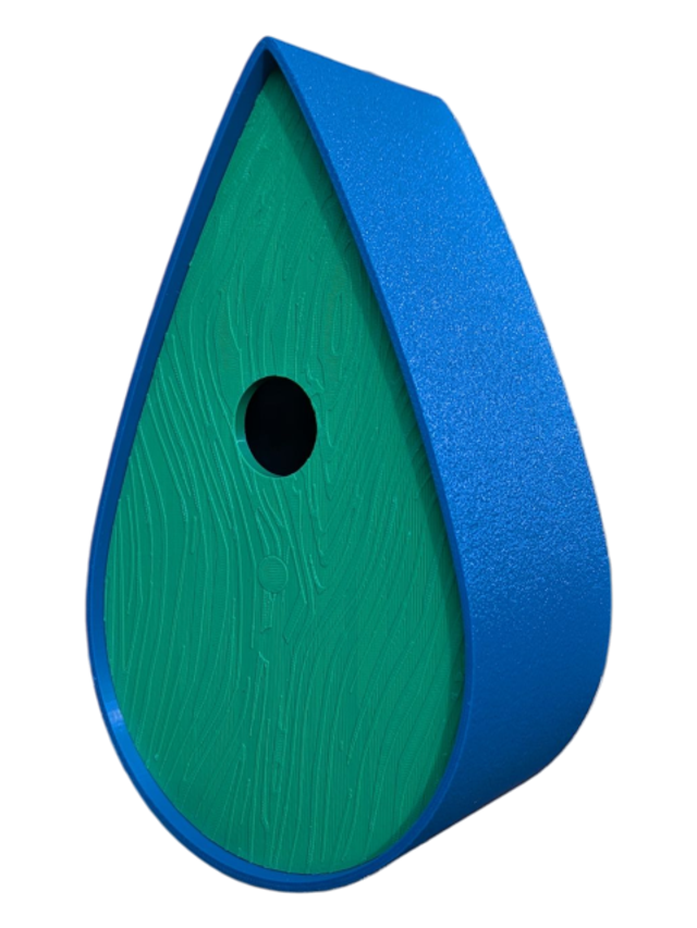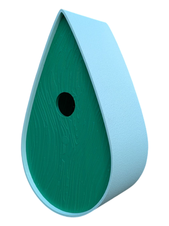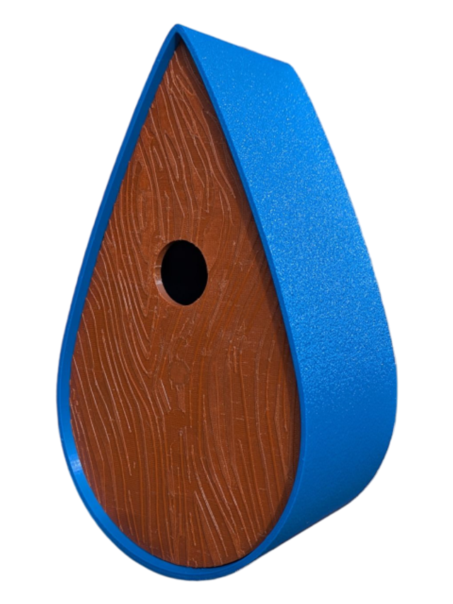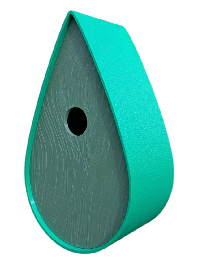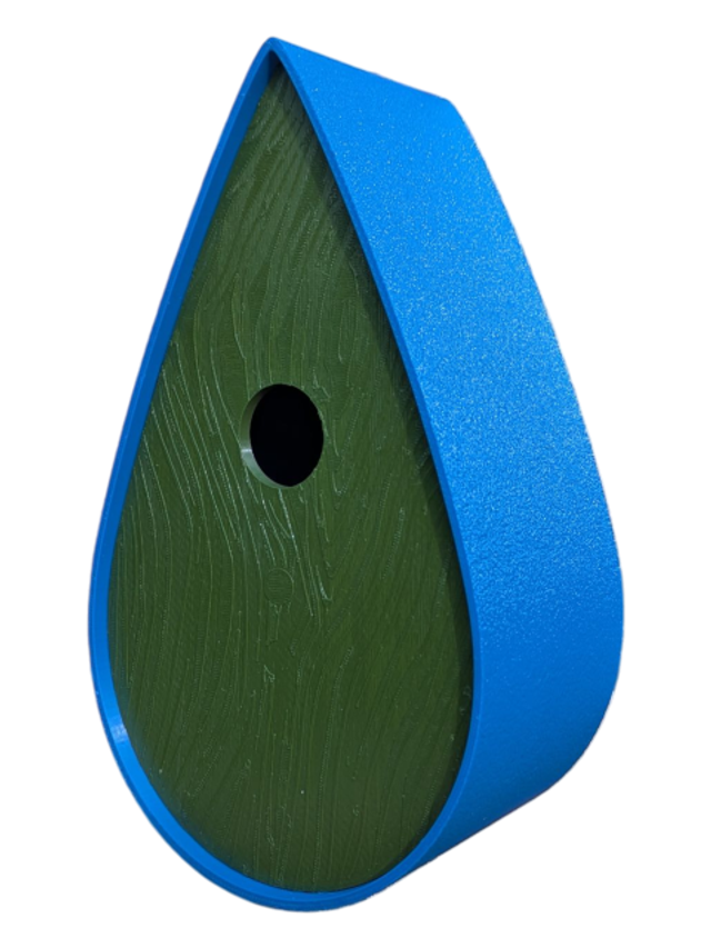 Nichoir bicolore à oiseaux de la nature en forme de goutte d'eau moderne effet bois